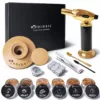 EXPERIENCE EFORTLESS MIXOLOGY with our uniquely designed Cocktail & Whiskey smoker kit. The drink smoker set contains: wooden smoker, torch (no butane), 6x wood chips, 6x marble stones, Filter, spoon, tongs and brush. Crafted from superior-quality beech wood, it features a wide bottom hole for seamless smoke infusion. The double mesh filter ensures enhanced smoker protection. The whiskey smoker kit includes 100% natural wood chips in six varieties: oak, apple, walnut, peach, cherry, and pecan.